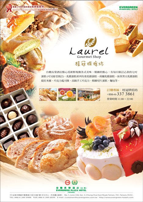 【台糖長榮酒店(台南) 桂冠烘焙坊】Laurel Gourmet Shop,以美食家之品味精神追求高極致美味,提供新鮮、天然、高品質產品是我們的堅持,期望能以對美食的精神作為我們與您的共鳴。